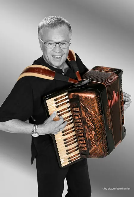 Das Akkordeon „beschäftigt“ ihn schon seit seinem sechsten Lebensjahr. Seit 1978 Berufsmusiker. Davor gelernter Schriftsetzter.